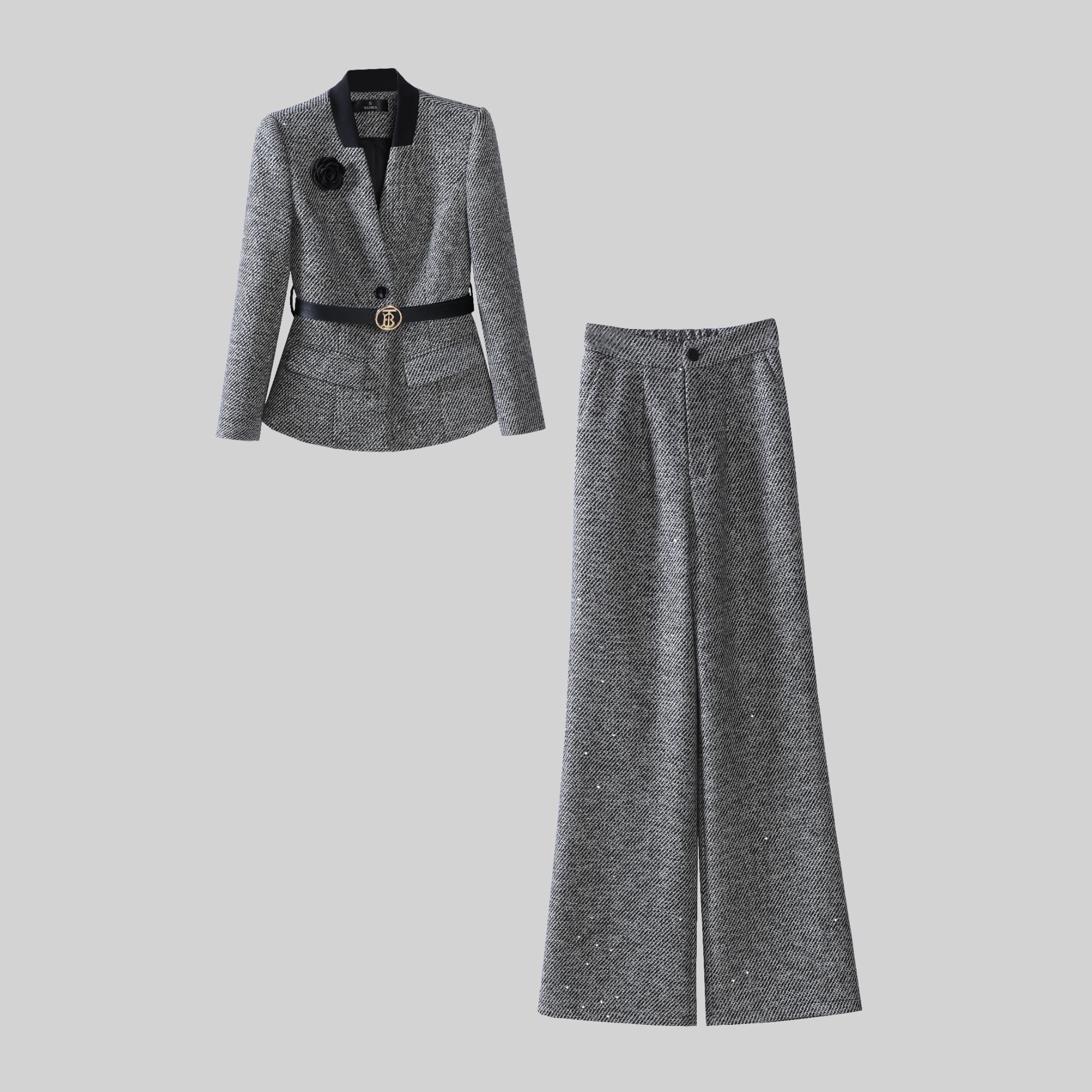 重工显瘦西装套装 6612秋冬灰色新款斜纹重工时尚显瘦西装套装女设计感西服阔腿裤#时尚套装 #品质女装 #套装穿搭#爆款热卖中 #好物推荐🔥